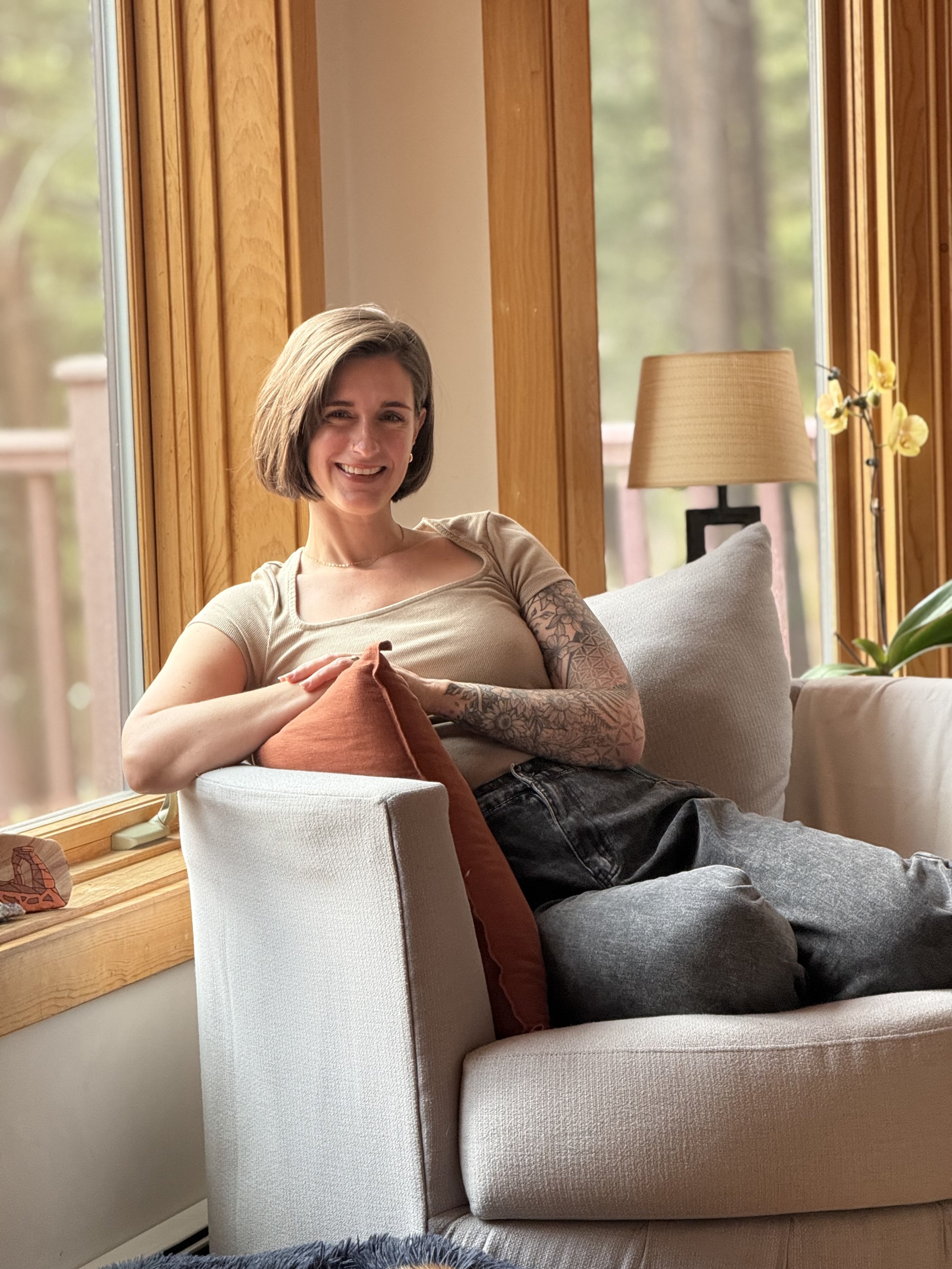 Today, I live a slow and intentional life with my partner and our dog in the Rocky Mountains near Boulder, Colorado. I’m nourished by time in nature, sauna-ing, reading, cooking, hosting gatherings, and deepening relationships with the people I love. These practices keep me grounded, regulated, and present—so I can offer the same to those I serve.